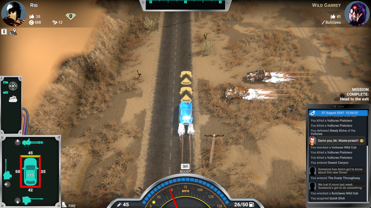 Auto Fire combines classic car combat with a Tactical RPG that roams across outlaw lands in a world where drivers are worshiped like celebrities. Salvage equipment and cars and build the sexiest, deadliest ride. Work for a corp, haul cargo, fight in the combat arena or become a savior. The choice is yours. Visit Game Website