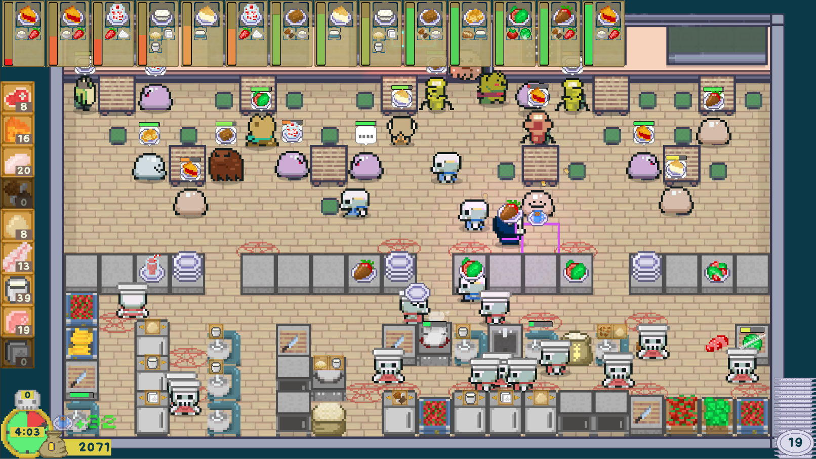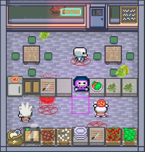 Bone's Café is a fast paced, 1-4 Players couch co-op, cooking game. Customize the layout of your kitchen to guarantee your success. Specialize your menu in ingredients and recipes to design your ultimate restaurant. Put your necromancy skills to the test and raise your own undead kitchen staff. Visit Game Website