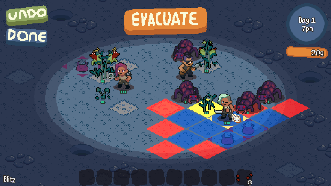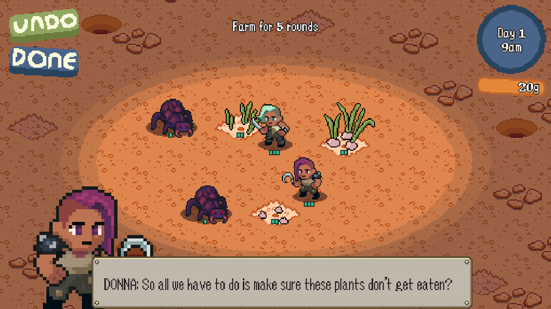 Farmageddon is a strategy rpg about farming in the post-apocalyptic wastelands of New San Francisco. The world has been sundered by the great cataclysm, reducing the environment to sand and silt and dust. You and your scavengers must go out and scrounge enough food to sustain our colony! Visit Game Website